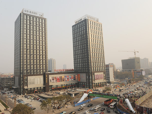 義商國際由三部分業(yè)態(tài)組成:第一部分為商業(yè),由5層裙樓和地下1層組成,包括購物中心、臨街商鋪、餐飲娛樂等,商業(yè)面積為36407㎡。第二部分為公寓(A座)及寫字樓(B座),由兩棟23層(6-28層)主樓組成,建筑面積為65109㎡,其中公寓452套,寫字樓224套。第三部分為地下-2層停車場,地下-3層人防工程(戰(zhàn)時可容納4000人的人防工程,平時為停車場)組成,建筑面積18582㎡。